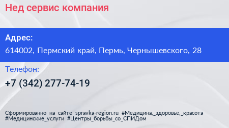 Нед-сервис, компания по адресу 614002, Пермский край, Пермь, Чернышевского, 28 в дальнейшем Организация, размещена в следующих категориях:
