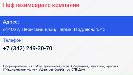 Нефтехимсервис, компания по адресу 614097, Пермский край, Пермь, Подлесная, 43 в дальнейшем Организация, размещена в следующих категориях: