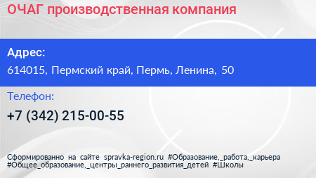 ОЧАГ, производственная компания по адресу 614015, Пермский край, Пермь, Ленина, 50 в дальнейшем Организация, размещена в следующих категориях:
