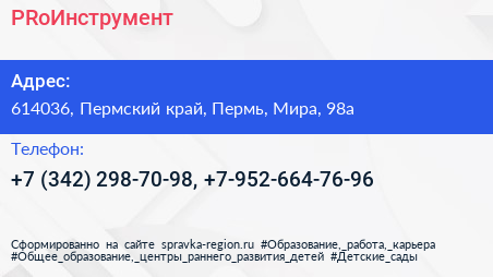 PRoИнструмент по адресу 614036, Пермский край, Пермь, Мира, 98а в дальнейшем Организация, размещена в следующих категориях: