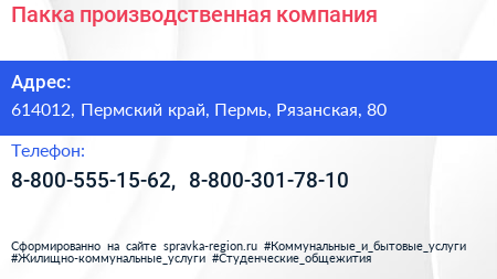 Пакка, производственная компания по адресу 614012, Пермский край, Пермь, Рязанская, 80 в дальнейшем Организация, размещена в следующих категориях: