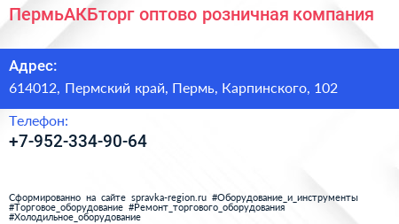 ПермьАКБторг, оптово-розничная компания по адресу 614012, Пермский край, Пермь, Карпинского, 102 в дальнейшем Организация, размещена в следующих категориях: