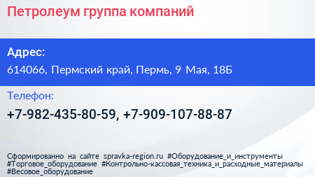 Петролеум, группа компаний по адресу 614066, Пермский край, Пермь, 9 Мая, 18Б в дальнейшем Организация, размещена в следующих категориях: