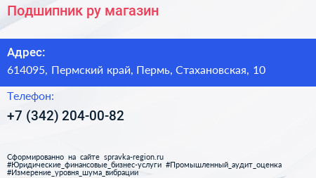 Подшипник.ру, магазин по адресу 614095, Пермский край, Пермь, Стахановская, 10 в дальнейшем Организация, размещена в следующих категориях:
