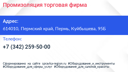 Промизоляция, торговая фирма по адресу 614010, Пермский край, Пермь, Куйбышева, 95Б в дальнейшем Организация, размещена в следующих категориях: