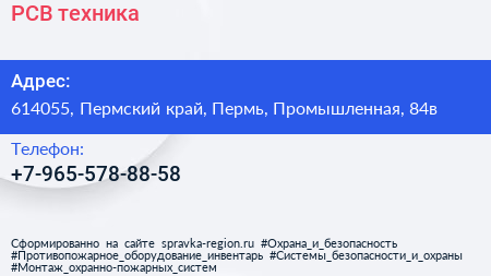 РСВ-техника по адресу 614055, Пермский край, Пермь, Промышленная, 84в в дальнейшем Организация, размещена в следующих категориях: