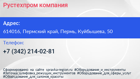 Рустехпром, компания по адресу 614016, Пермский край, Пермь, Куйбышева, 50 в дальнейшем Организация, размещена в следующих категориях: