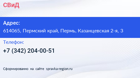 СВиД по адресу 614065, Пермский край, Пермь, Казанцевская 2-я, 3 в дальнейшем Организация, размещена в следующих категориях: