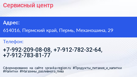 Сервисный центр по адресу 614016, Пермский край, Пермь, Механошина, 29 в дальнейшем Организация, размещена в следующих категориях: