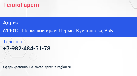 ТеплоГарант по адресу 614010, Пермский край, Пермь, Куйбышева, 95Б в дальнейшем Организация, размещена в следующих категориях: