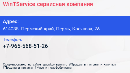 WinTService, сервисная компания по адресу 614038, Пермский край, Пермь, Косякова, 76 в дальнейшем Организация, размещена в следующих категориях: