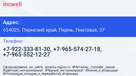 incwell по адресу 614025, Пермский край, Пермь, Пихтовая, 37 в дальнейшем Организация, размещена в следующих категориях: