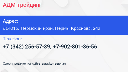 АДМ-трейдинг по адресу 614015, Пермский край, Пермь, Краснова, 24а в дальнейшем Организация, размещена в следующих категориях: