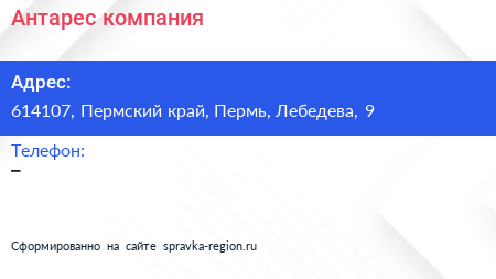 Антарес, компания по адресу 614107, Пермский край, Пермь, Лебедева, 9 в дальнейшем Организация, размещена в следующих категориях: