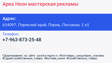 Арка Неон, мастерская рекламы по адресу 614097, Пермский край, Пермь, Песчаная, 1 к1 в дальнейшем Организация, размещена в следующих категориях: