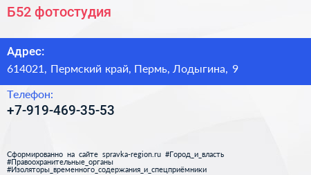 Б52, фотостудия по адресу 614021, Пермский край, Пермь, Лодыгина, 9 в дальнейшем Организация, размещена в следующих категориях: