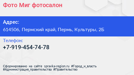 Фото Миг, фотосалон по адресу 614506, Пермский край, Пермь, Культуры, 2Б в дальнейшем Организация, размещена в следующих категориях: