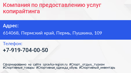 Компания по предоставлению услуг копирайтинга по адресу 614068, Пермский край, Пермь, Пушкина, 109 в дальнейшем Организация, размещена в следующих категориях: