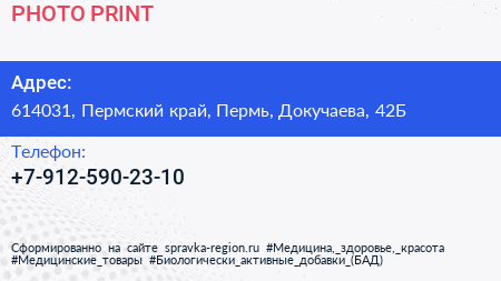 PHOTO-PRINT по адресу 614031, Пермский край, Пермь, Докучаева, 42Б в дальнейшем Организация, размещена в следующих категориях: