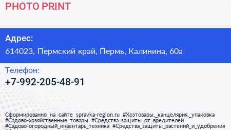 PHOTO-PRINT по адресу 614023, Пермский край, Пермь, Калинина, 60а в дальнейшем Организация, размещена в следующих категориях: