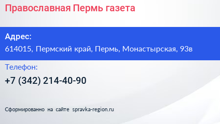 Православная Пермь, газета по адресу 614015, Пермский край, Пермь, Монастырская, 93в в дальнейшем Организация, размещена в следующих категориях: