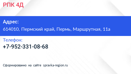РПК 4Д по адресу 614010, Пермский край, Пермь, Маршрутная, 11а в дальнейшем Организация, размещена в следующих категориях: