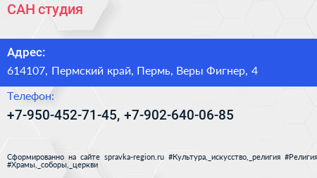 САН, студия по адресу 614107, Пермский край, Пермь, Веры Фигнер, 4 в дальнейшем Организация, размещена в следующих категориях: