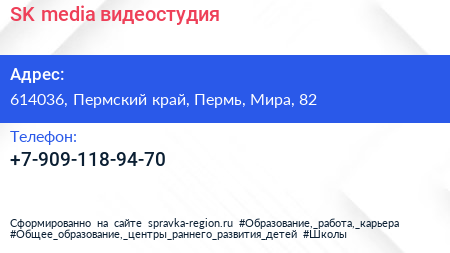 SK media, видеостудия по адресу 614036, Пермский край, Пермь, Мира, 82 в дальнейшем Организация, размещена в следующих категориях: