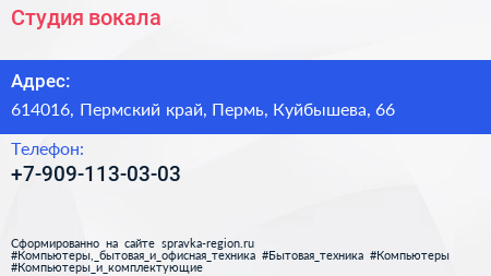 Студия вокала по адресу 614016, Пермский край, Пермь, Куйбышева, 66 в дальнейшем Организация, размещена в следующих категориях:
