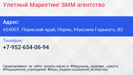 Улетный Маркетинг, SMM-агентство по адресу 614007, Пермский край, Пермь, Максима Горького, 83 в дальнейшем Организация, размещена в следующих категориях: