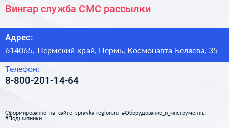 Вингар, служба СМС-рассылки по адресу 614065, Пермский край, Пермь, Космонавта Беляева, 35 в дальнейшем Организация, размещена в следующих категориях: