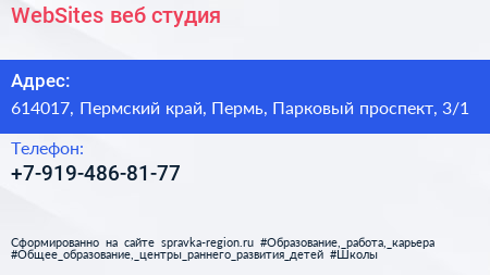 WebSites, веб-студия по адресу 614017, Пермский край, Пермь, Парковый проспект, 3/1 в дальнейшем Организация, размещена в следующих категориях: