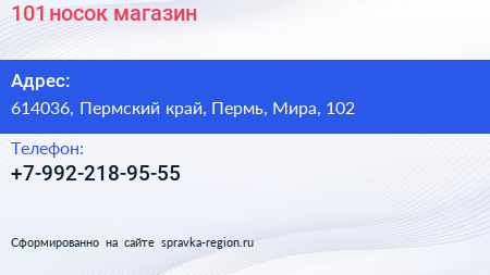101 носок, магазин по адресу 614036, Пермский край, Пермь, Мира, 102 в дальнейшем Организация, размещена в следующих категориях: