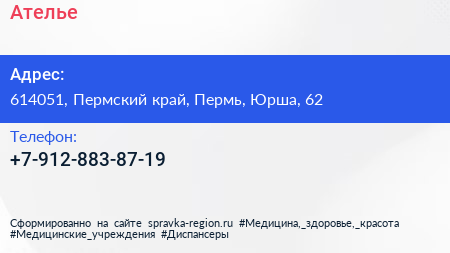 Ателье по адресу 614051, Пермский край, Пермь, Юрша, 62 в дальнейшем Организация, размещена в следующих категориях: