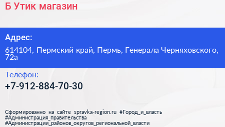 Б/Утик, магазин по адресу 614104, Пермский край, Пермь, Генерала Черняховского, 72а в дальнейшем Организация, размещена в следующих категориях: