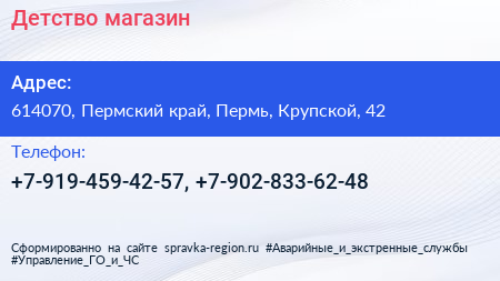 Детство, магазин по адресу 614070, Пермский край, Пермь, Крупской, 42 в дальнейшем Организация, размещена в следующих категориях: