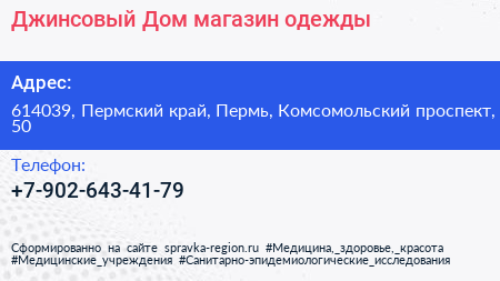 Джинсовый Дом, магазин одежды по адресу 614039, Пермский край, Пермь, Комсомольский проспект, 50 в дальнейшем Организация, размещена в следующих категориях: