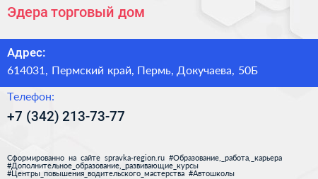 Эдера, торговый дом по адресу 614031, Пермский край, Пермь, Докучаева, 50Б в дальнейшем Организация, размещена в следующих категориях: