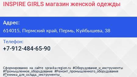 INSPIRE GIRLS, магазин женской одежды по адресу 614015, Пермский край, Пермь, Куйбышева, 38 в дальнейшем Организация, размещена в следующих категориях: