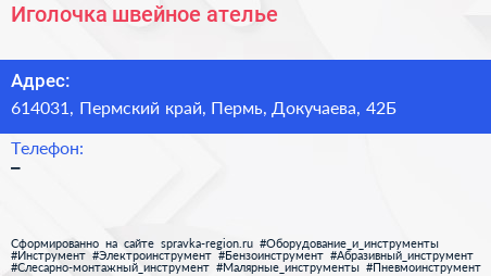Иголочка, швейное ателье по адресу 614031, Пермский край, Пермь, Докучаева, 42Б в дальнейшем Организация, размещена в следующих категориях: