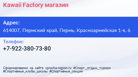Kawaii Factory, магазин по адресу 614007, Пермский край, Пермь, Красноармейская 1-я, 6 в дальнейшем Организация, размещена в следующих категориях: