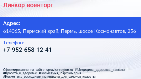 Линкор, военторг по адресу 614065, Пермский край, Пермь, шоссе Космонавтов, 256 в дальнейшем Организация, размещена в следующих категориях:
