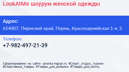LookAtMe, шоурум женской одежды по адресу 614007, Пермский край, Пермь, Красноармейская 1-я, 3 в дальнейшем Организация, размещена в следующих категориях:
