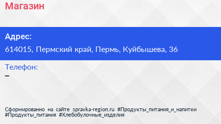 Магазин по адресу 614015, Пермский край, Пермь, Куйбышева, 36 в дальнейшем Организация, размещена в следующих категориях:
