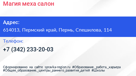 Магия меха, салон по адресу 614013, Пермский край, Пермь, Спешилова, 114 в дальнейшем Организация, размещена в следующих категориях:
