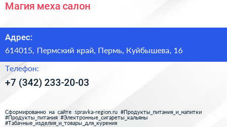 Магия меха, салон по адресу 614015, Пермский край, Пермь, Куйбышева, 16 в дальнейшем Организация, размещена в следующих категориях: