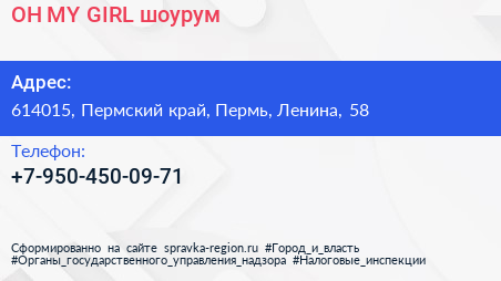OH MY GIRL, шоурум по адресу 614015, Пермский край, Пермь, Ленина, 58 в дальнейшем Организация, размещена в следующих категориях: