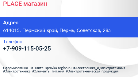 PLACE, магазин по адресу 614015, Пермский край, Пермь, Советская, 28а в дальнейшем Организация, размещена в следующих категориях: