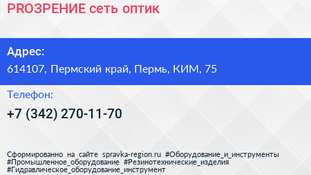 PROЗРЕНИЕ, сеть оптик по адресу 614107, Пермский край, Пермь, КИМ, 75 в дальнейшем Организация, размещена в следующих категориях: