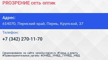 PROЗРЕНИЕ, сеть оптик по адресу 614070, Пермский край, Пермь, Крупской, 37 в дальнейшем Организация, размещена в следующих категориях: